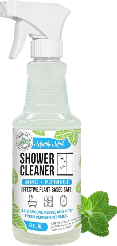 These sprays save time and energy by allowing you to spray the surface, let it sit briefly, and then rinse it away. Be sure and choose products that are safe for multiple surfaces and free from strong chemical odors, which can be overwhelming for sensitive individuals. This can be a game-changer for maintaining hygiene with minimal effort. These are the ones I use shown in the picture below. I use the wet and forget once a week and the Mighty Mint after every shower to keep the mess to a minimum. Click on the photos below to order yours today! https://amzn.to/3NdxLiA https://amzn.to/3N4OYuG